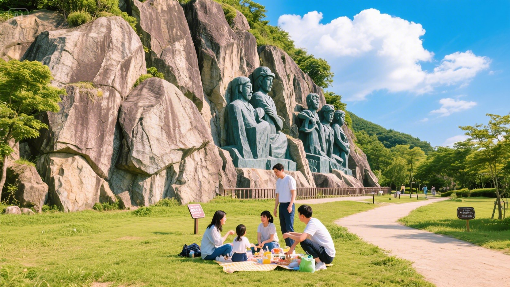 - 음성큰바위얼굴조각공원: 대형 바위얼굴·야외공원·포토존, 산책·피크닉