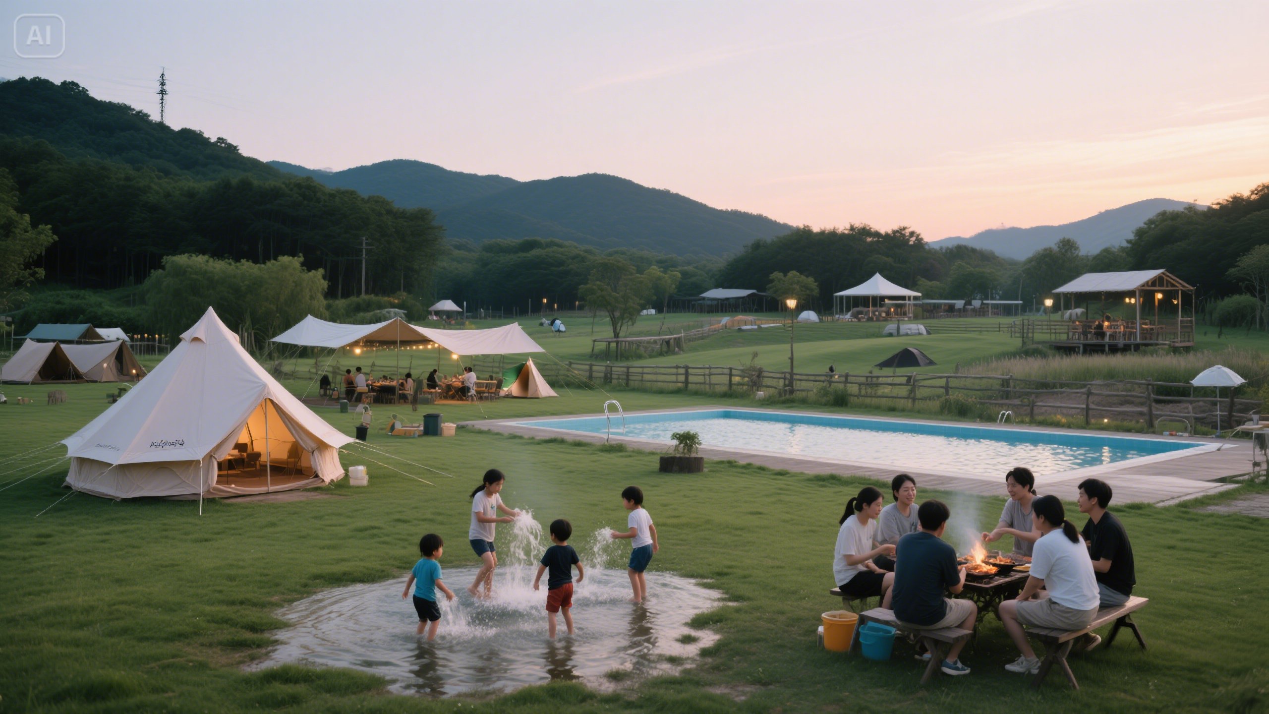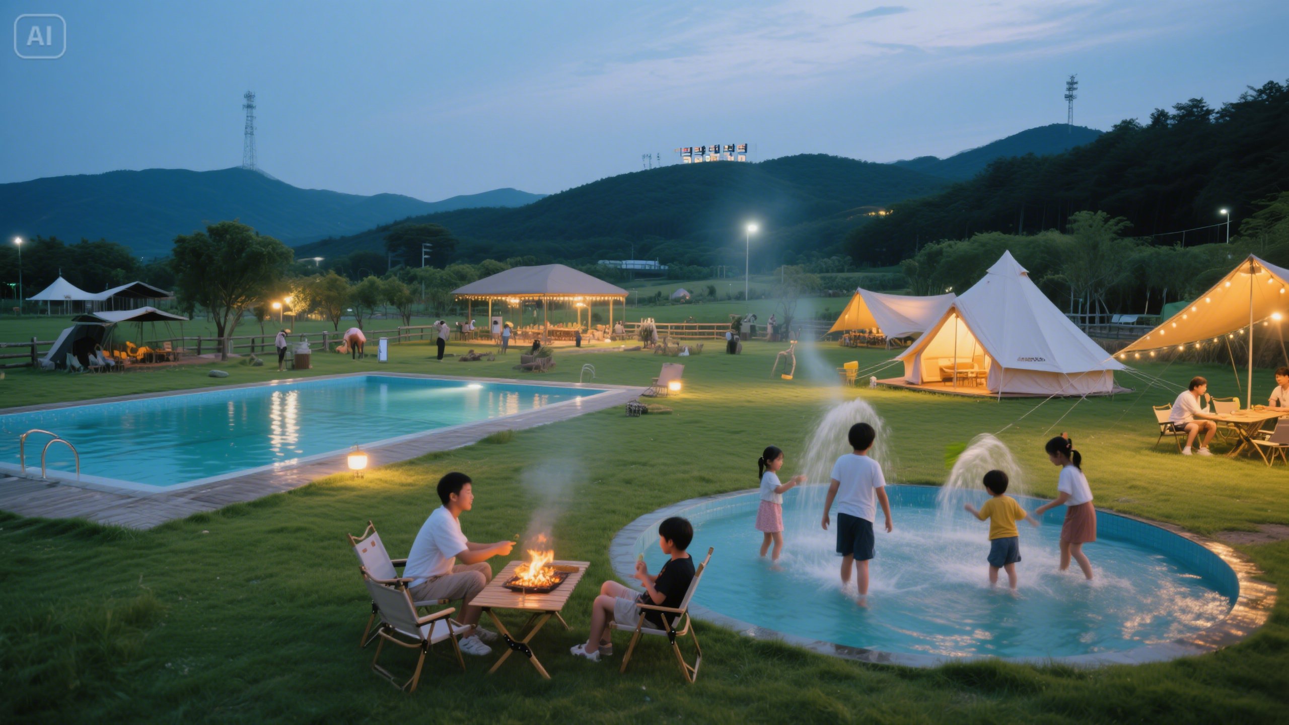 - 시설/편의시설: 캠핑존, 글램핑존, 수영장, 워터파크, 바비큐장, 샤워실, 화장실, 매점, 농장체험, 동물원, 놀이터, 카페, 편의점, 주차장.